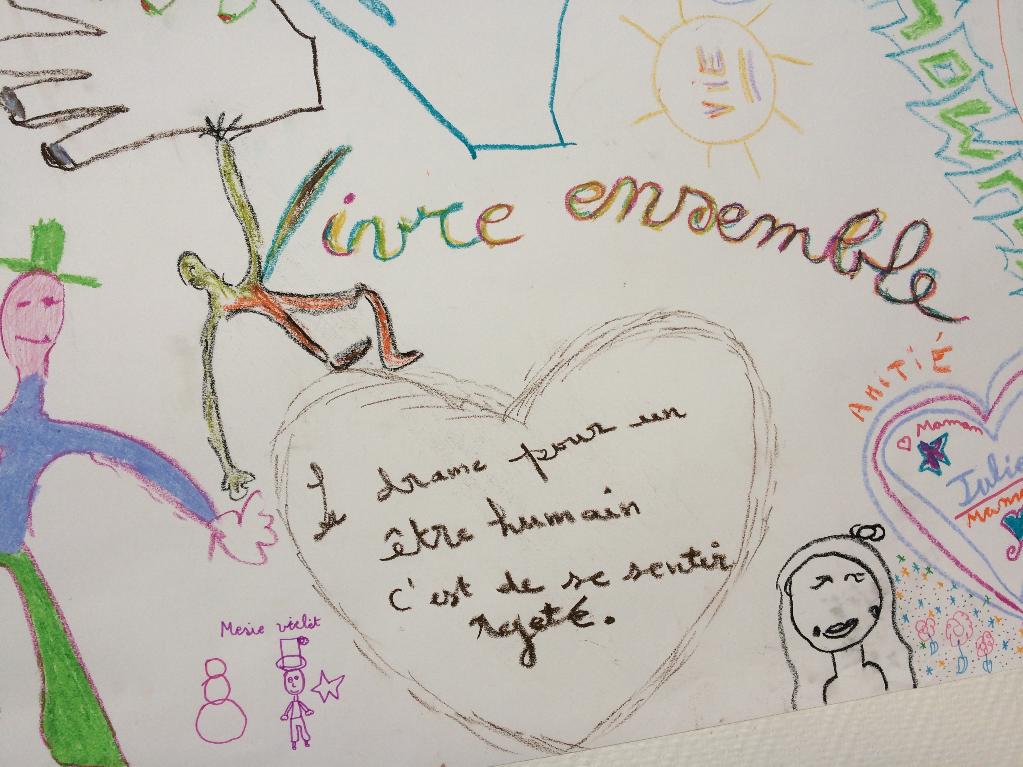 Vendredi 14, j’ai proposé qu’en petits groupes, des arbres soient dessinés et dedans et autour... les mots de la vie, les mots des petits bonheurs, les mots des difficultés, les mots d’humeur, les mots des souhaits et des projets...